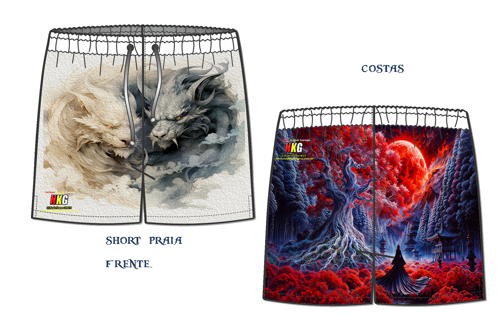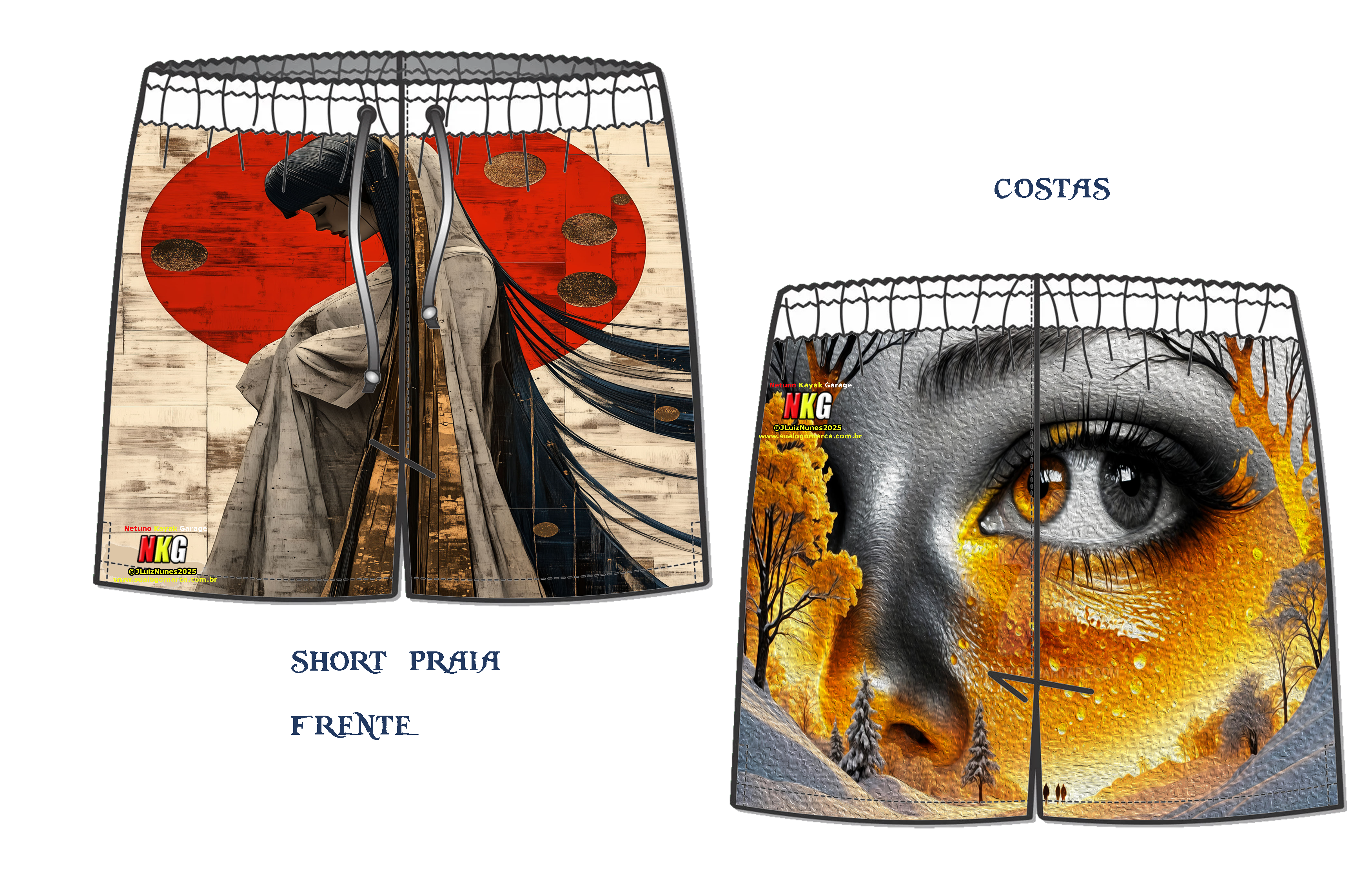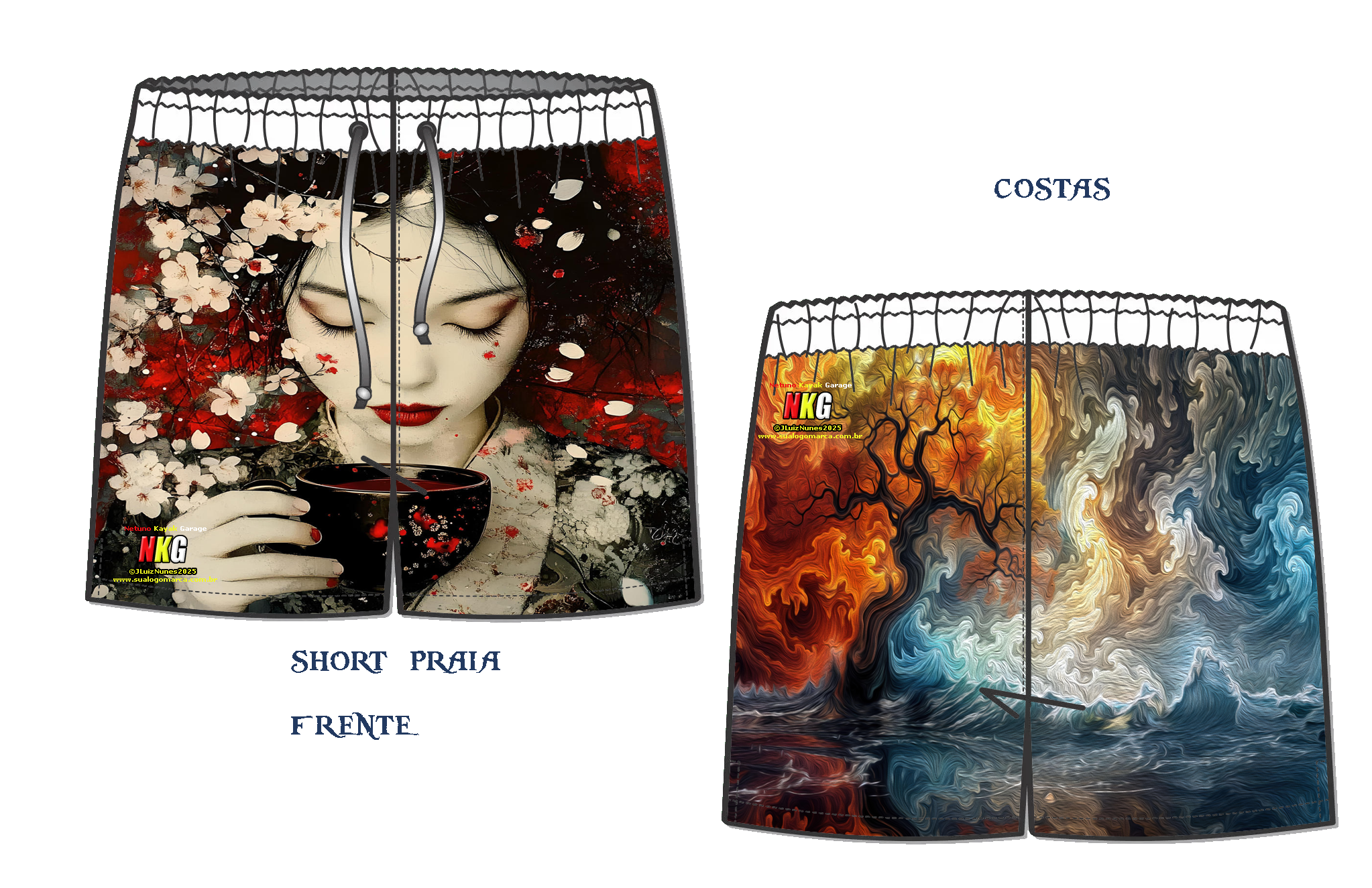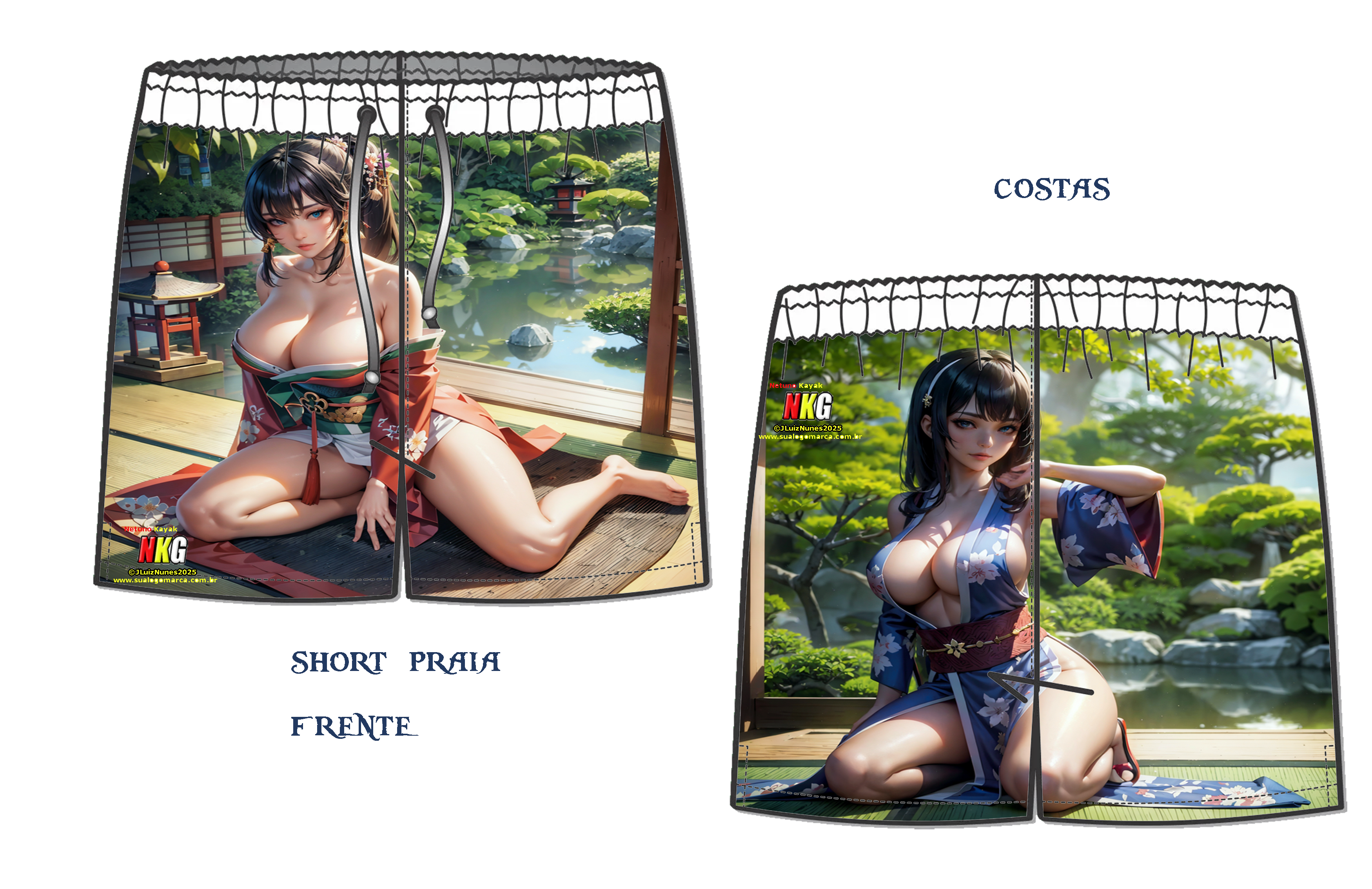 Decidimos por criar um novo tipo de paisagem para shorts para praia a linha Chinesa e Japonesa e natureza.