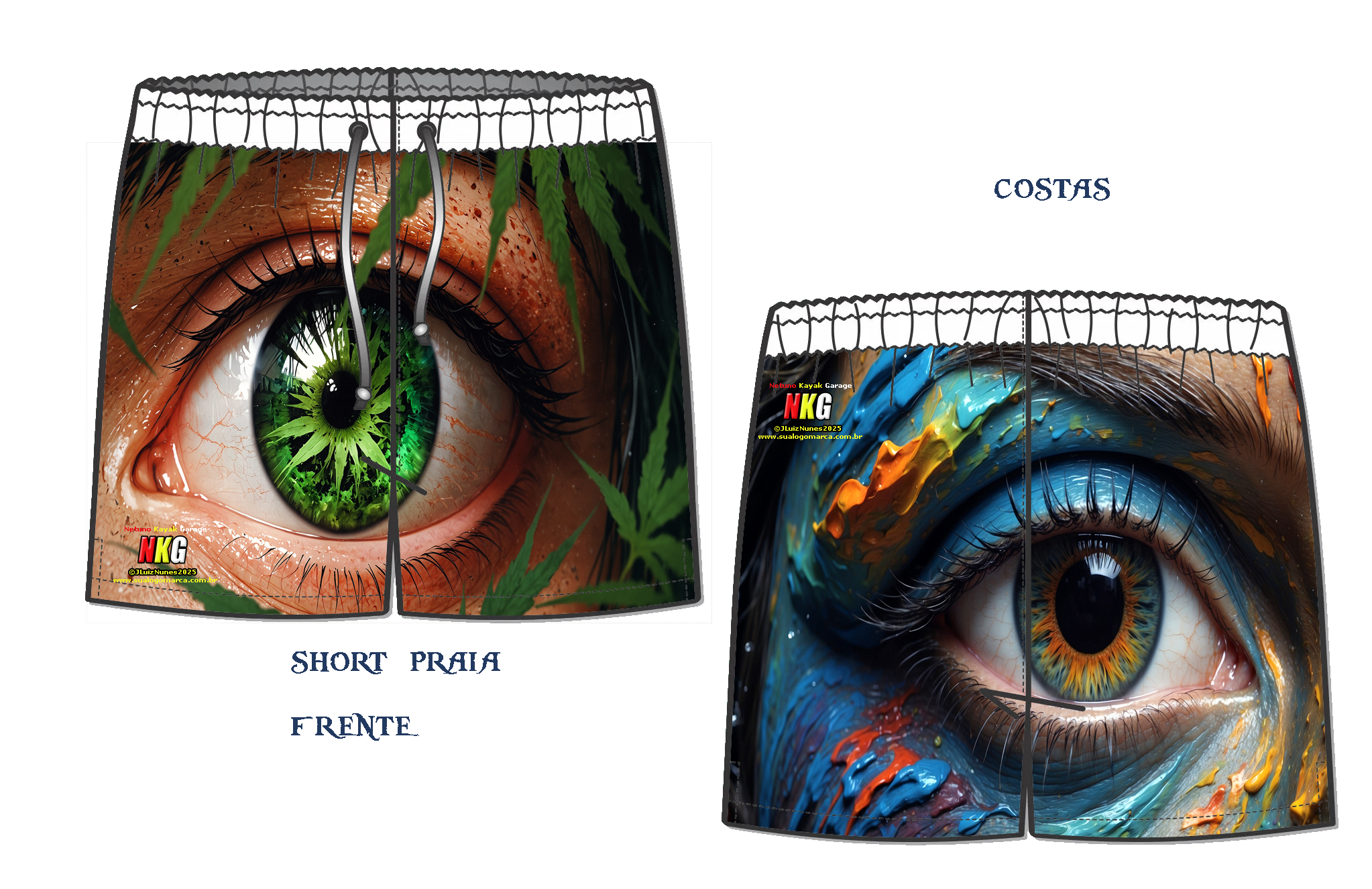 Vocês vão perguntar porque, nós respondemos, " porque no mercado não há um short sequer feito com arte e imagens bonitas só aqueles peixes horrorosos.